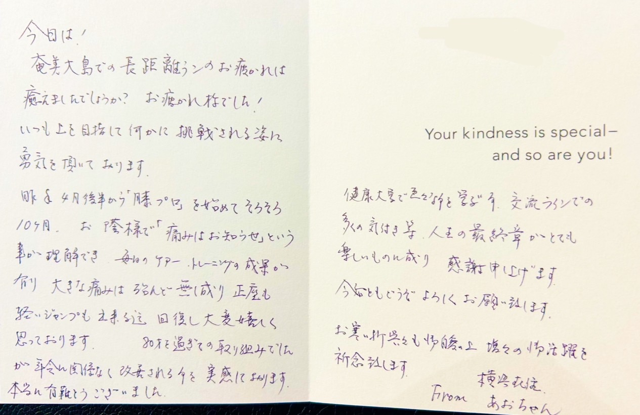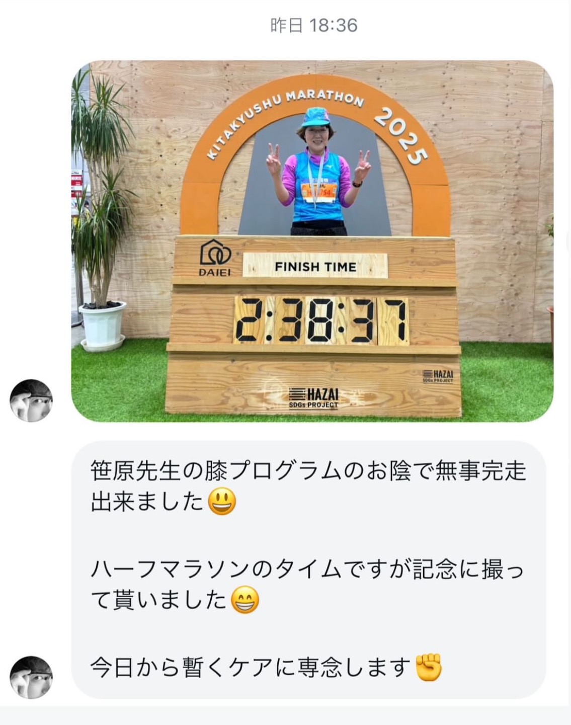 膝の痛みから解放され、ハーフマラソン感想できました!
